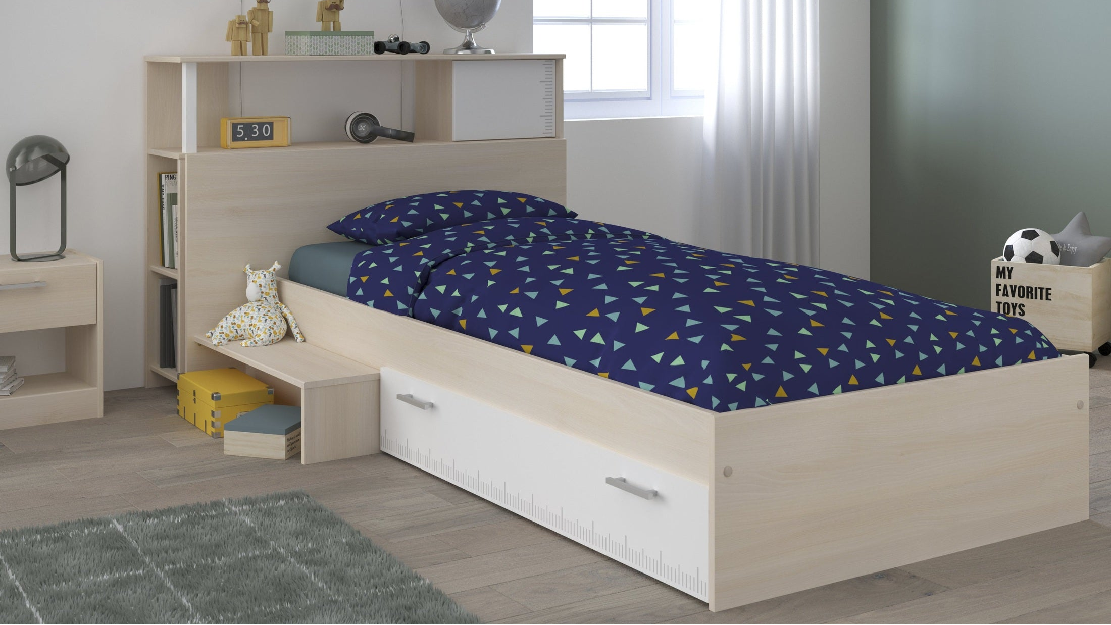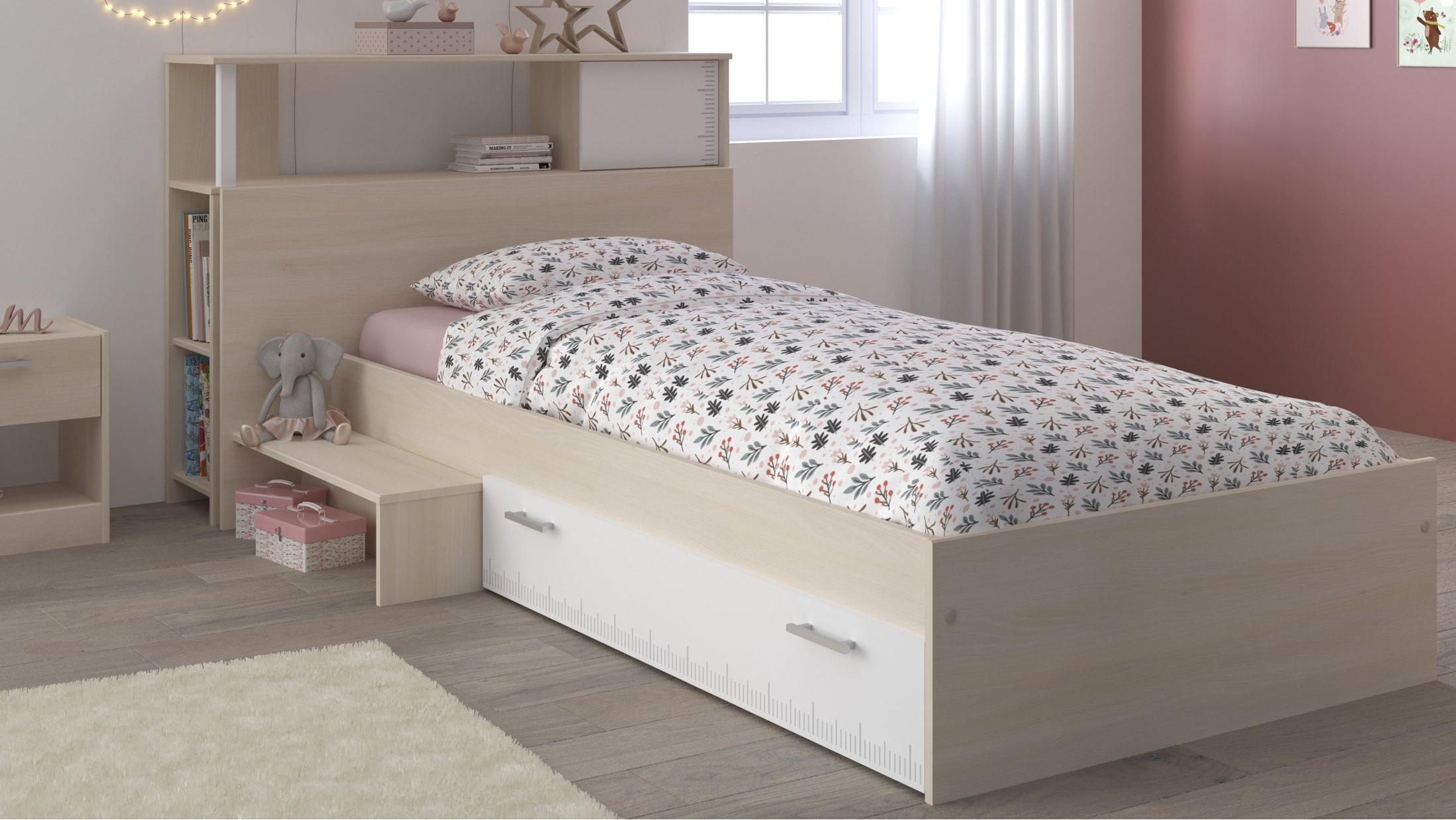 Parisot Parisot Jugendzimmer-Set Charly 17 - Set 3-teilig – Bett mit Schubkasten, Regal & Nachttisch in Weiß/Akazie