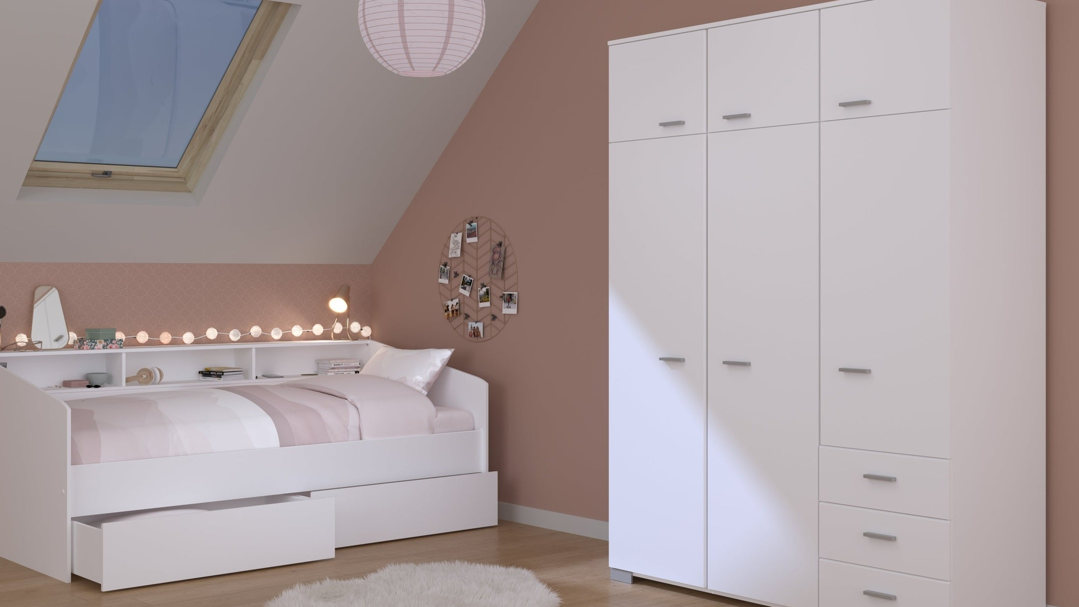 Parisot Kinderzimmer-Set Sleep 43 – 3-tlg. Stauraumbett, Bettschubkästen & Kleiderschrank - Weiß/Eiche