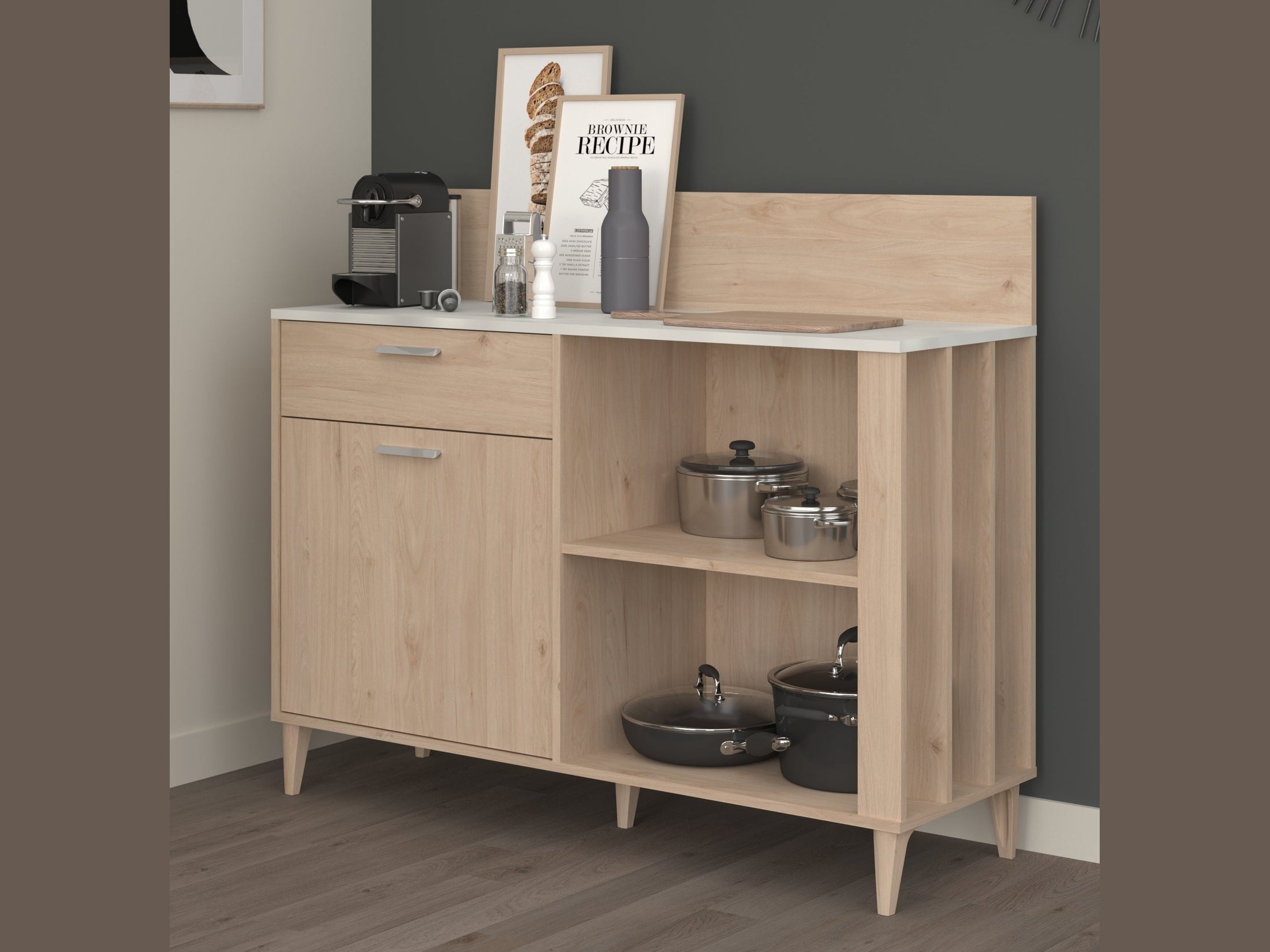 - Praktische Aufteilung: Schubkasten, offene Fächer und Tür bieten flexible Aufbewahrungsmöglichkeiten