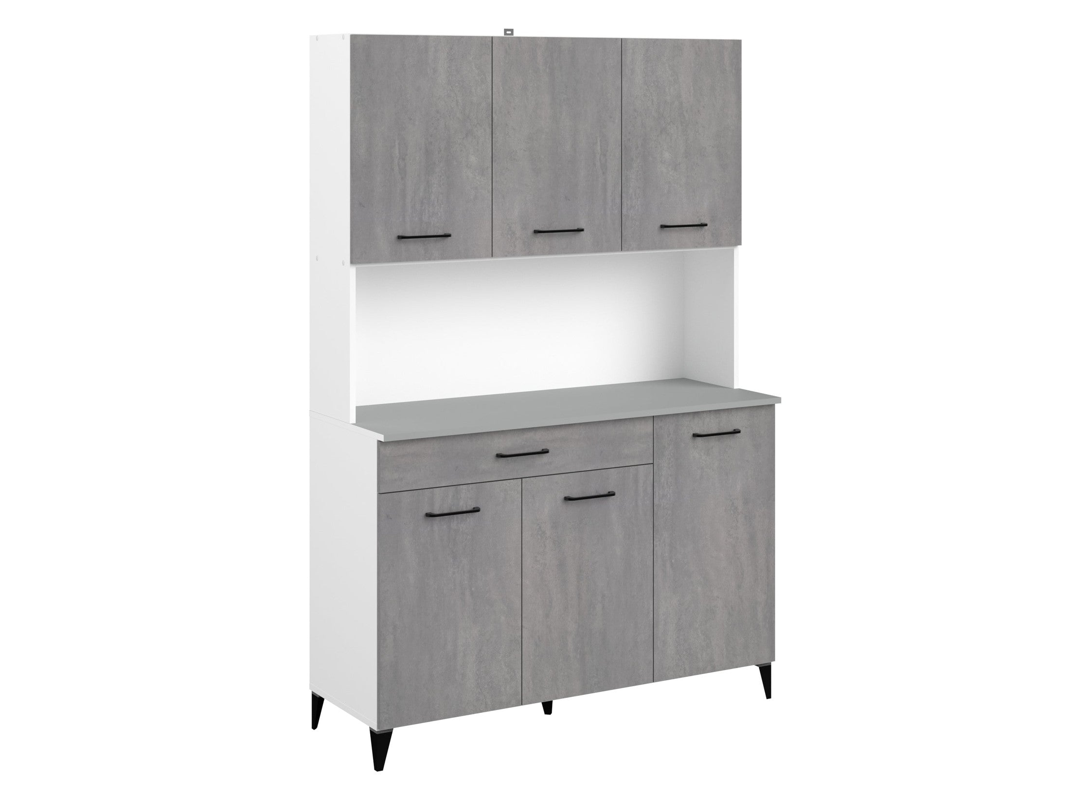 Dank seines trendigen Looks in weißem Korpus mit Fronten in heller Betonoptik fügt sich das Buffet harmonisch in moderne Wohnkonzepte ein. Schwarze Griffe in Kunststoff setzen elegante Akzente.