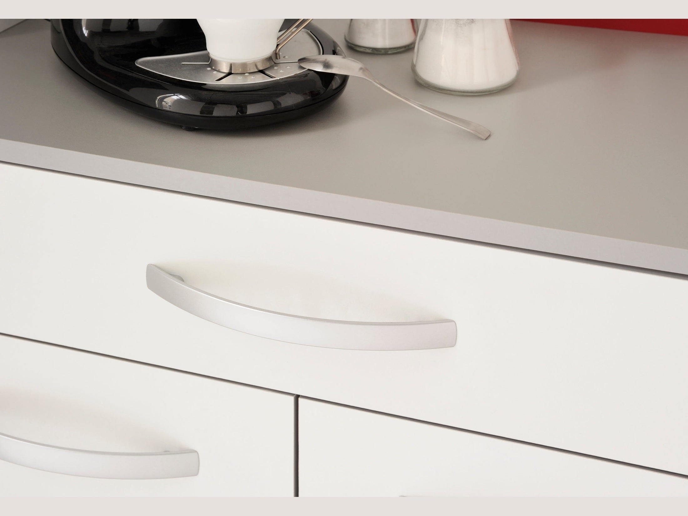 - Elegante Farbkombination: Der Weiß-Korpus und die graue Oberplatte mit dezenten Absetzungen passen perfekt zu modernen, minimalistischen Einrichtungsstilen