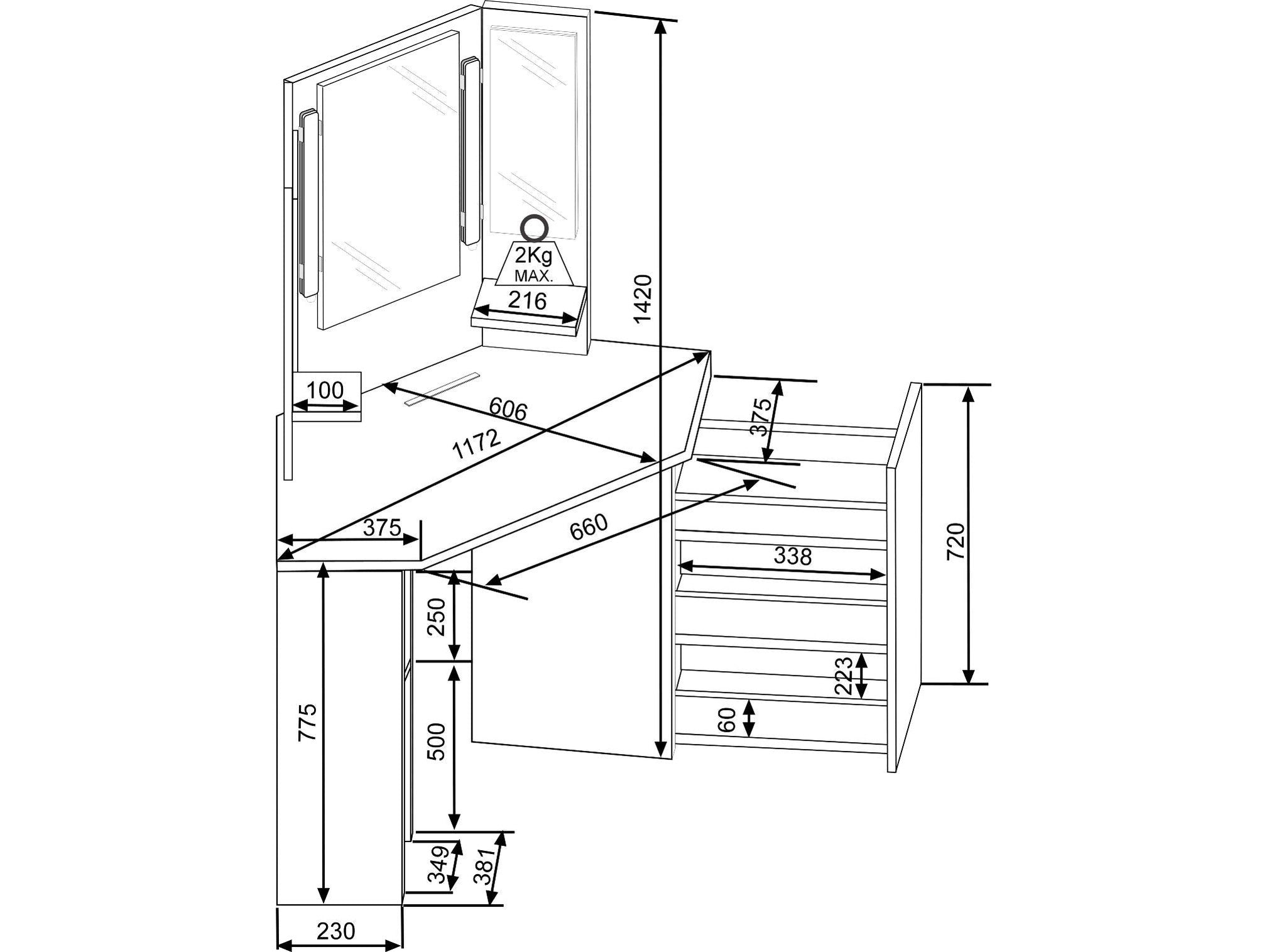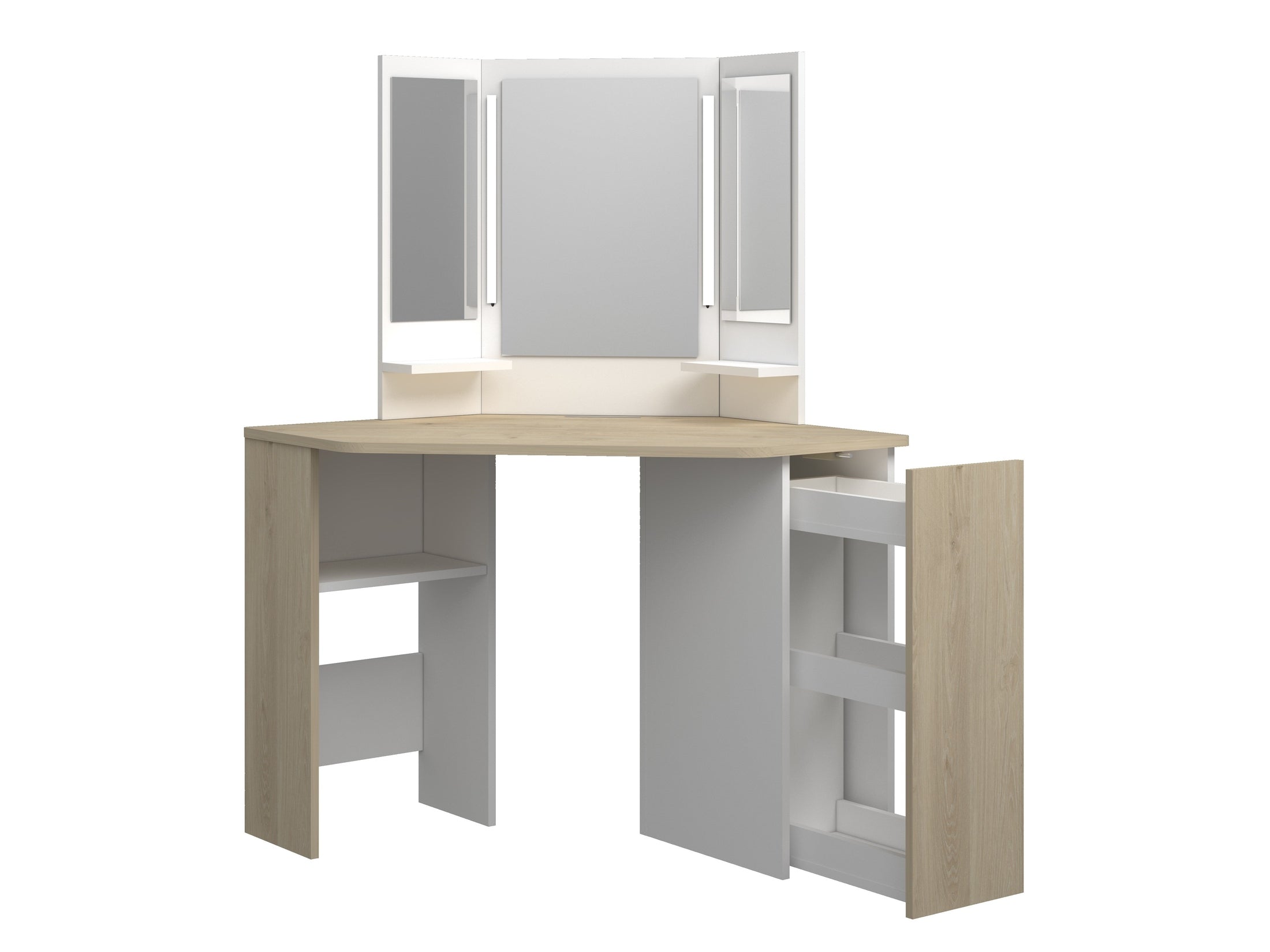 - Eck-Schminktisch mit Dreifachspiegel