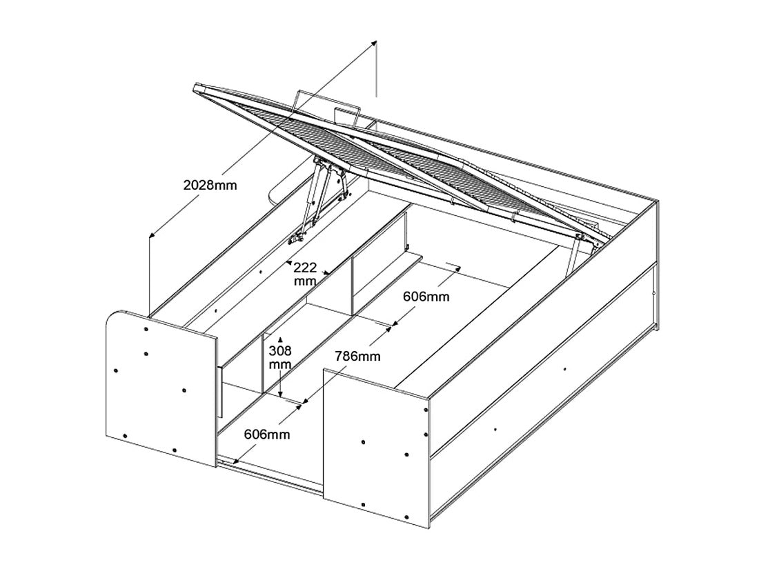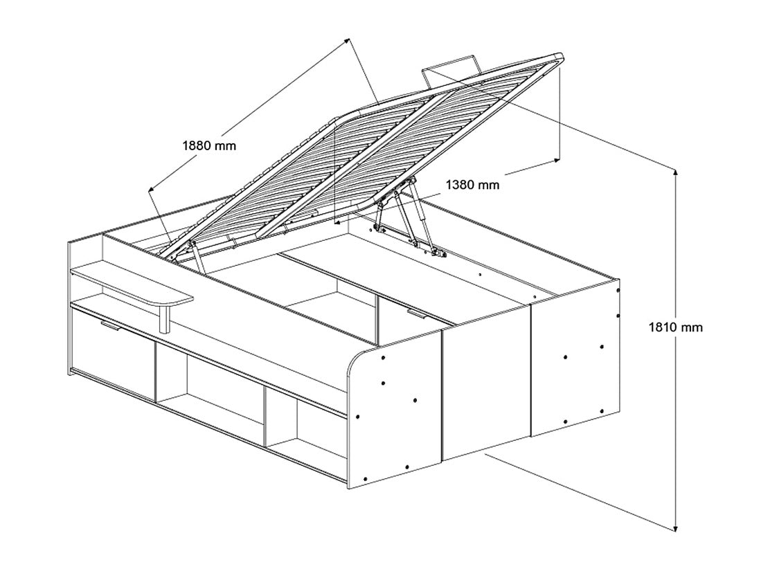Dank der geringen Höhe von ca. 80 cm Trempelhöhe ist dieses Bett speziell für Räume mit Dachschrägen geeignet. Der stabile, aufklappbare Lattenrost (140 x 200 cm) ist mit einem Hydrauliksystem mit GS-Sicherheitsbeschlag ausgestattet und hält bis zu 100 kg pro Seite stand.