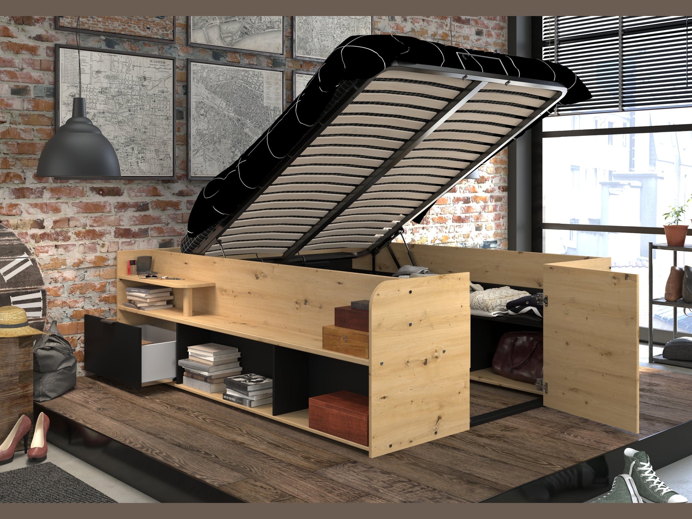 Maximale Funktionalität auf minimalem Raum: Das Hochbett Parisot Travel überzeugt als echtes Raumwunder und ist ideal für Räume mit Dachschrägen. Mit seinem modernen Dekor in Artisan Eiche und Schwarz bringt es stilvolle Gemütlichkeit ins Schlafzimmer – perfekt für Jugendliche, Studenten oder Gästezimmer mit wenig Platz.