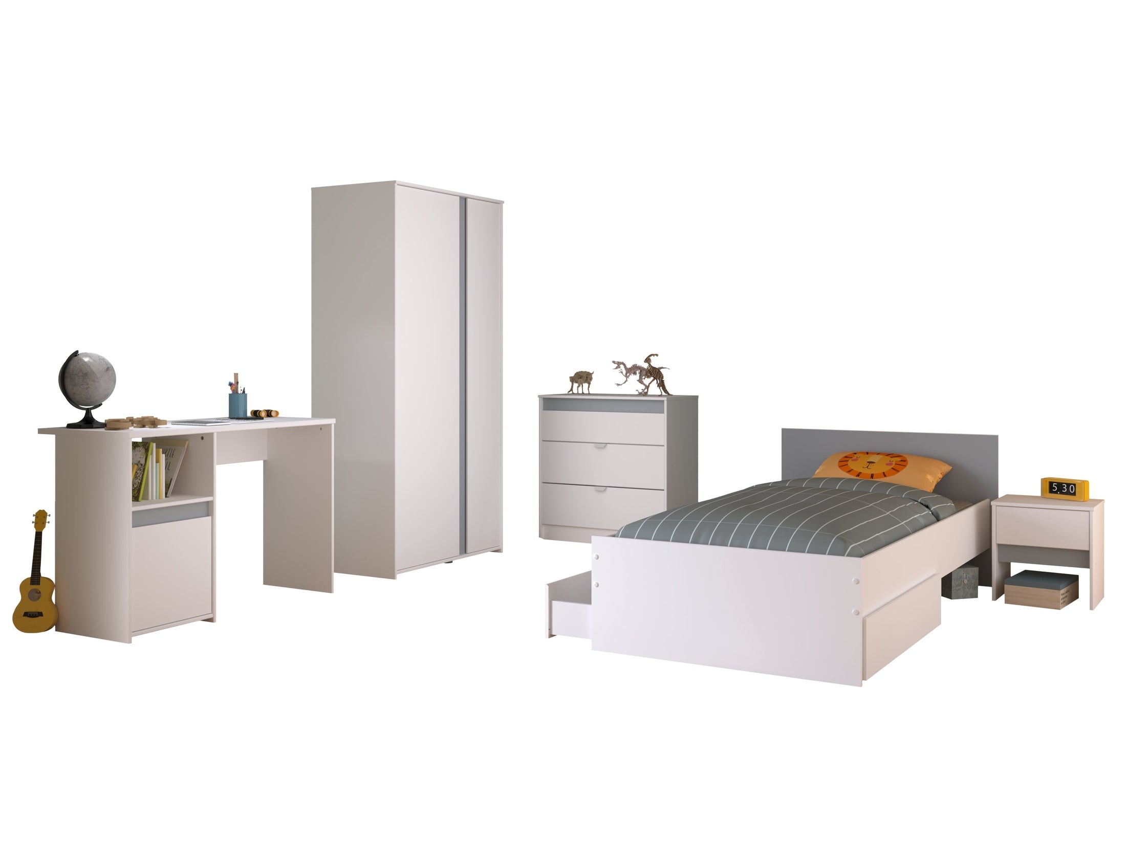 Das Parisot Pirouette 21 Kinderzimmer-Set bietet dir die perfekte Kombination aus modernem Design, cleverem Stauraum und funktionalem Komfort – ideal für Kinder- und Jugendzimmer. Dieses 6-teilige Komplettset vereint alles, was Kinder brauchen: Schlafplatz, Schreibtisch, Aufbewahrung und Stil!