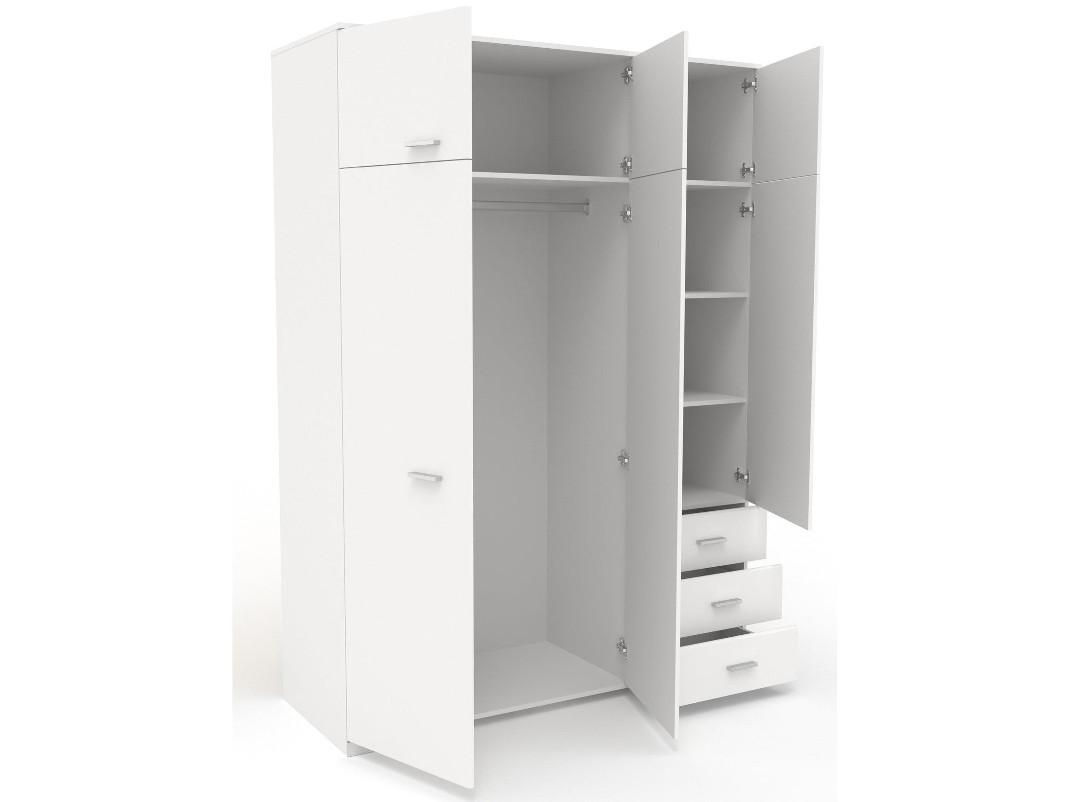 Links mit Fach und Kleiderstange – rechts mit vier Fächern und drei geräumigen Schubladen. Perfekt zur übersichtlichen Aufbewahrung von Kleidung und Accessoires.