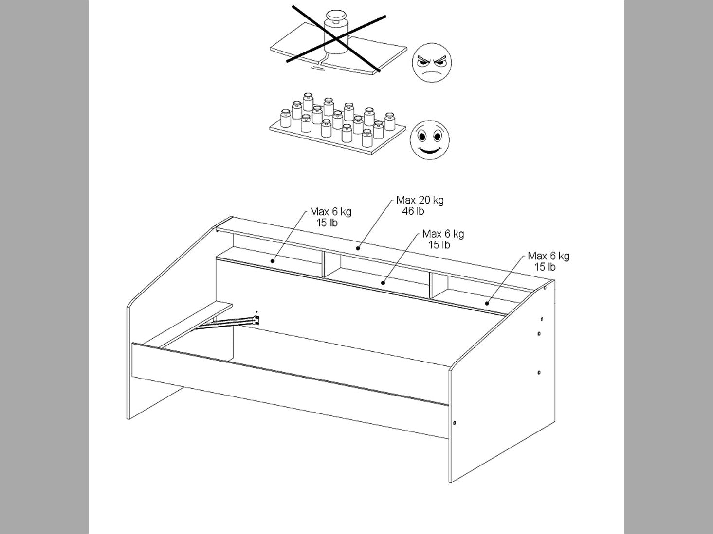 - Stauraumbett 90x200 cm mit 3 Ablagefächern und Schubkästen