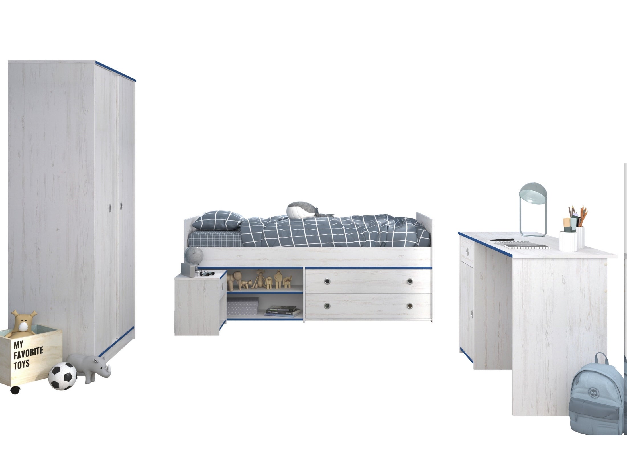 Parisot Smoozy 26 – Vielseitiges 4-teiliges Kinderzimmer-Set in Kiefer Weiß mit wandelbarem Farbdesign