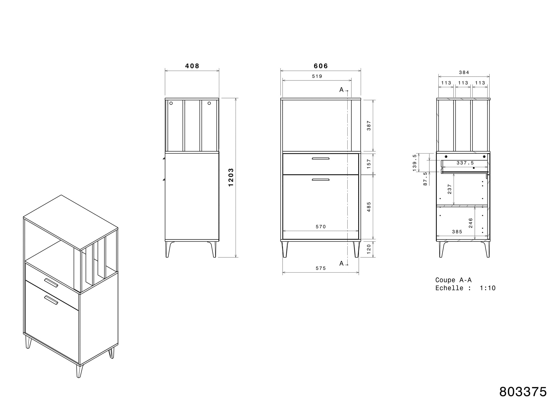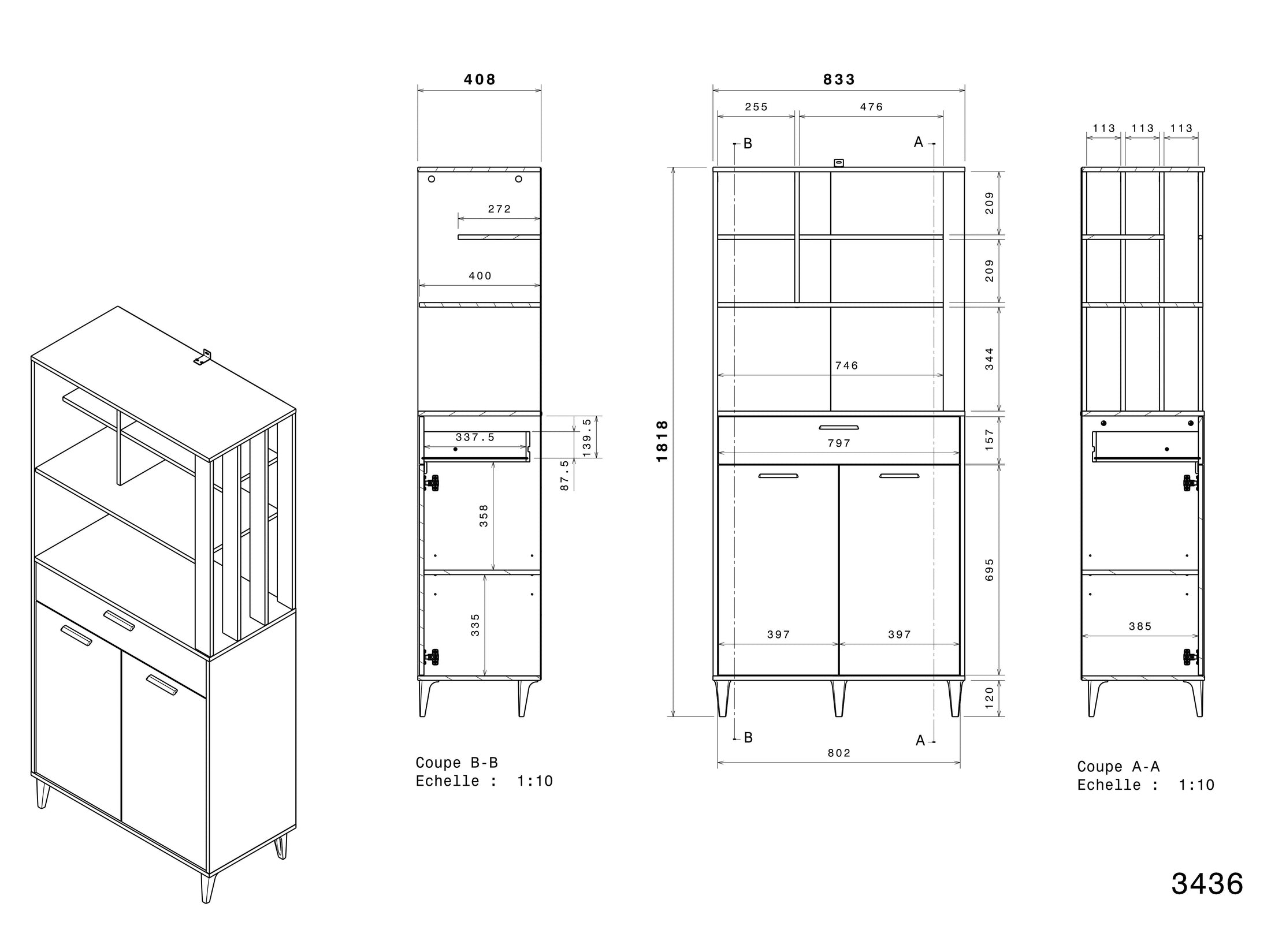 Oben: 1 offenes Fach – ideal für Mikrowelle, Küchenmaschine oder Aufbewahrungskörbe