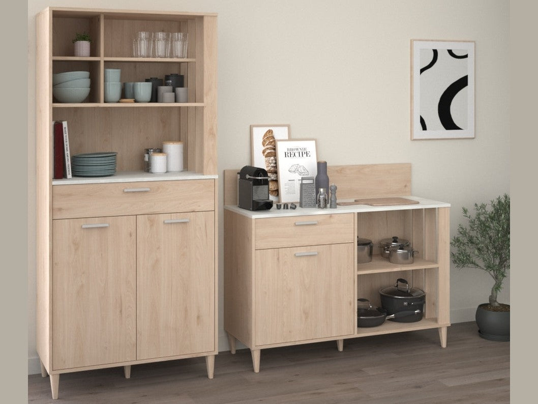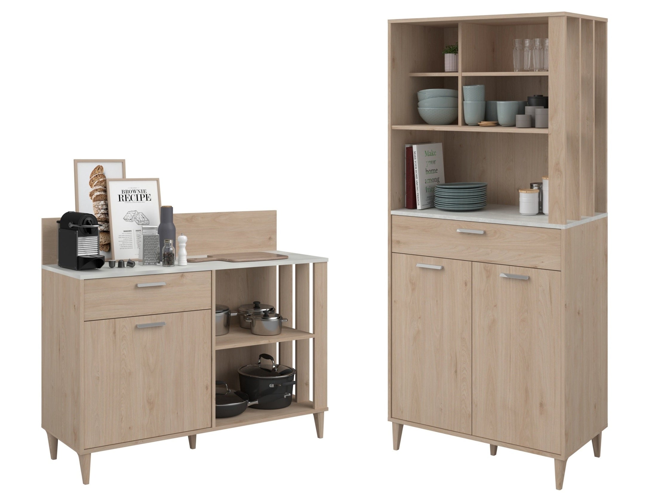 Das Küchenbuffet Parisot Gala 2 verbindet elegantes Design mit praktischer Funktionalität. Die warme Jackson Eiche Nachbildung und die helle Betonoptik verleihen diesem Set einen modernen, aber dennoch gemütlichen Look. Dank der pflegeleichten Melaminoberflächen ist es nicht nur optisch ein Highlight, sondern auch besonders pflegeleicht und langlebig.