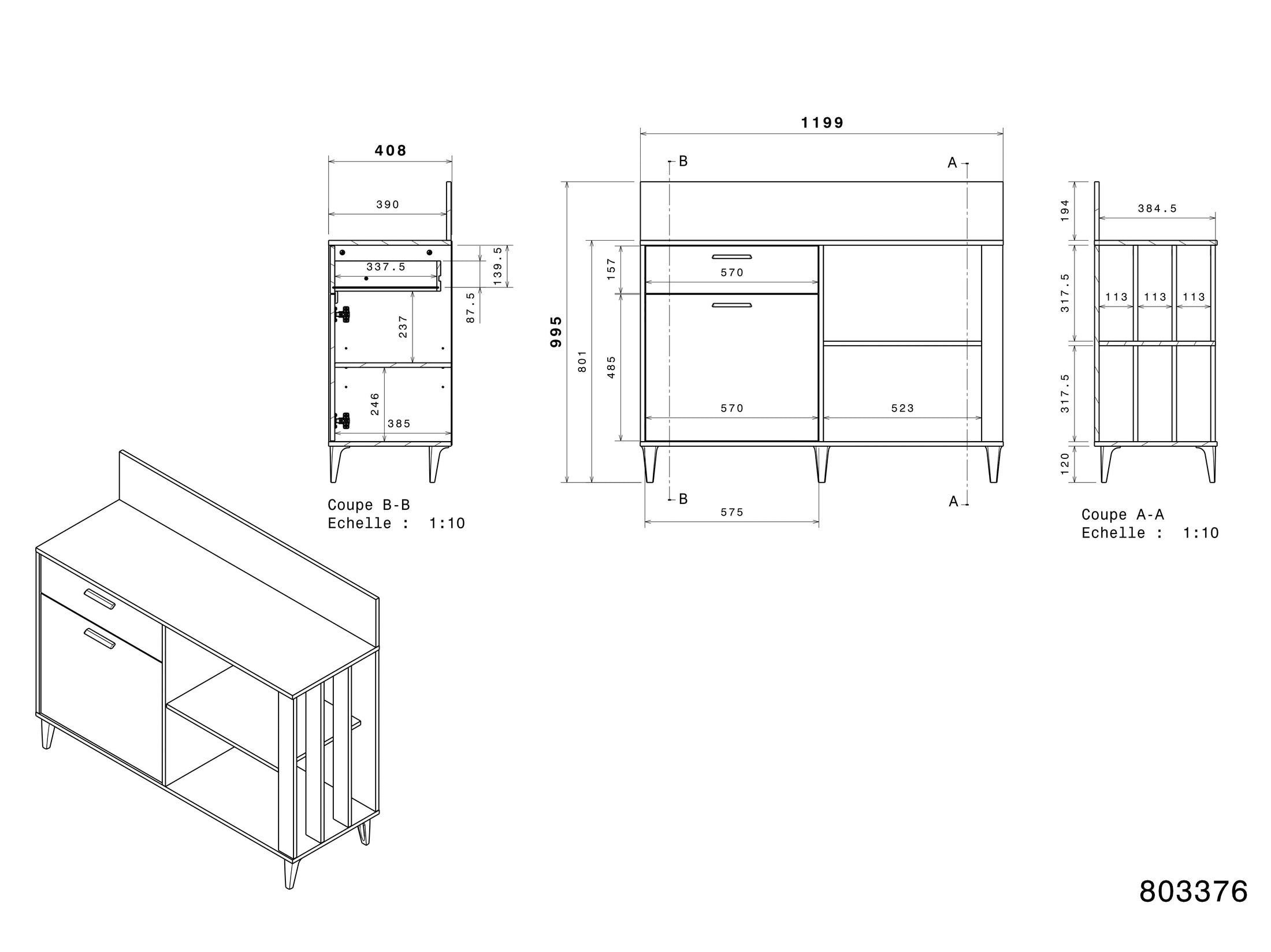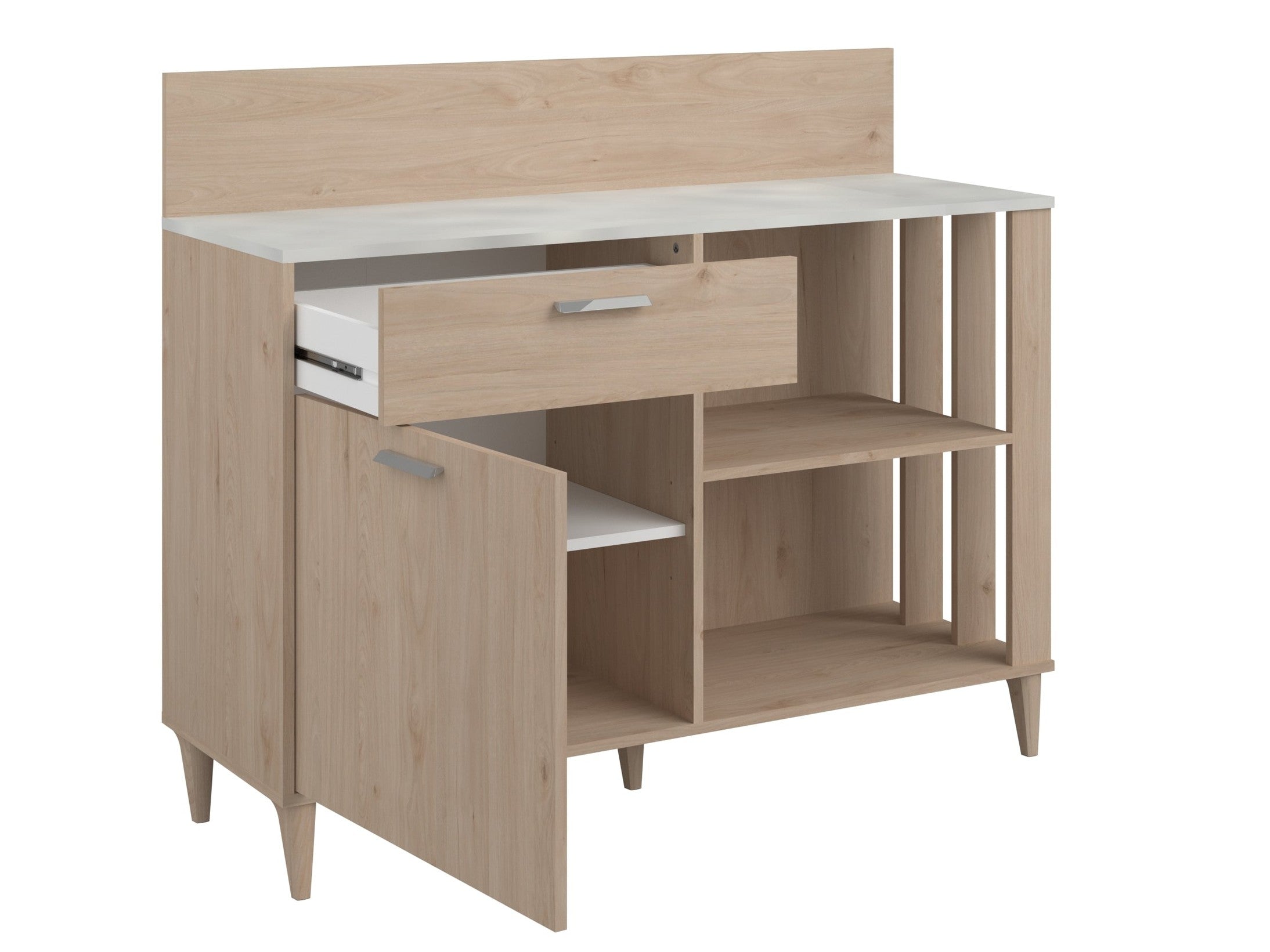 - Praktische Aufteilung: Schubkästen, offene Fächer und Türen bieten perfekte Ordnung und Übersicht