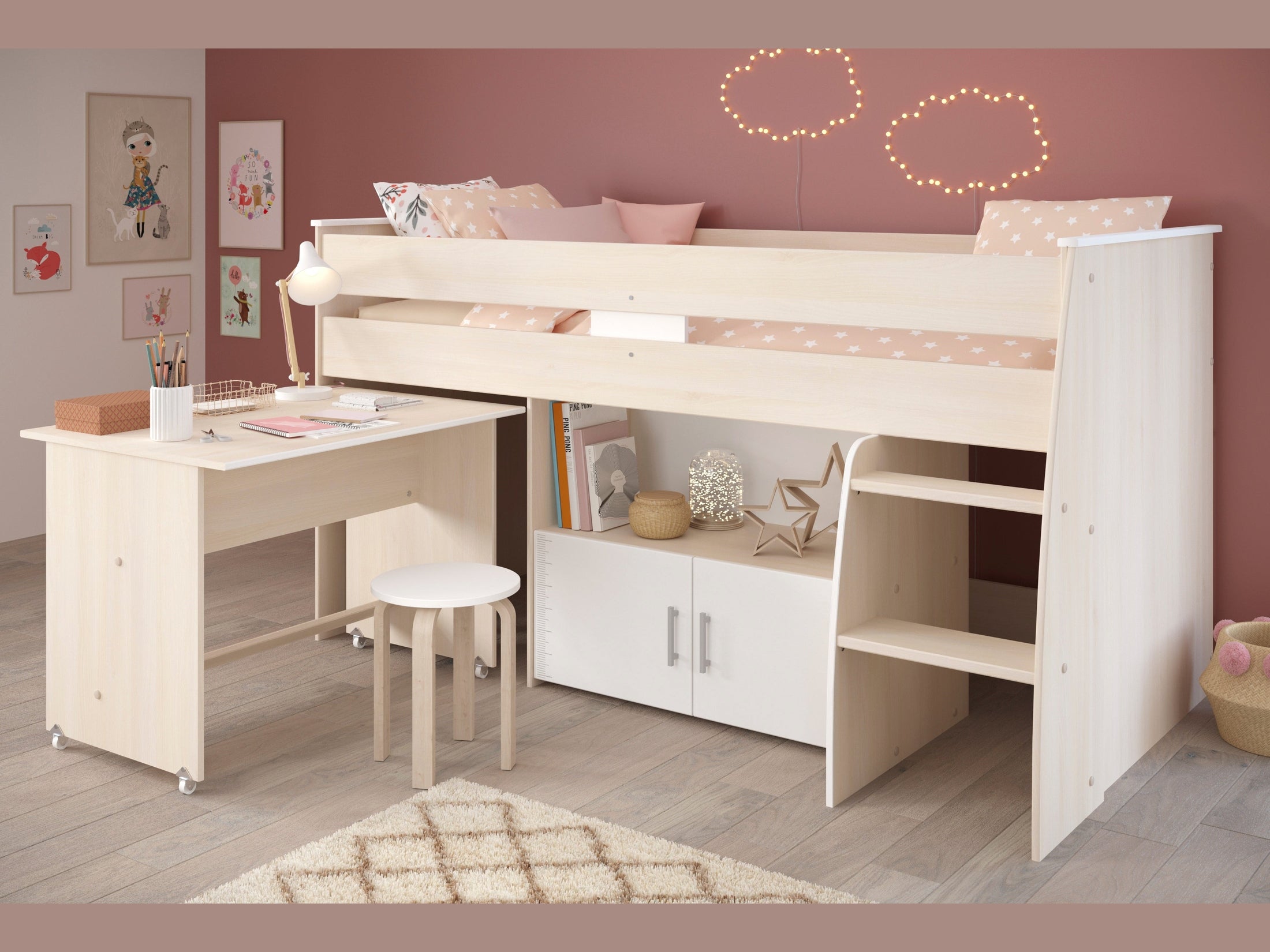 Parisot Charly 4 – Hochbett mit integriertem Schreibtisch und Kommode für das moderne Kinderzimmer