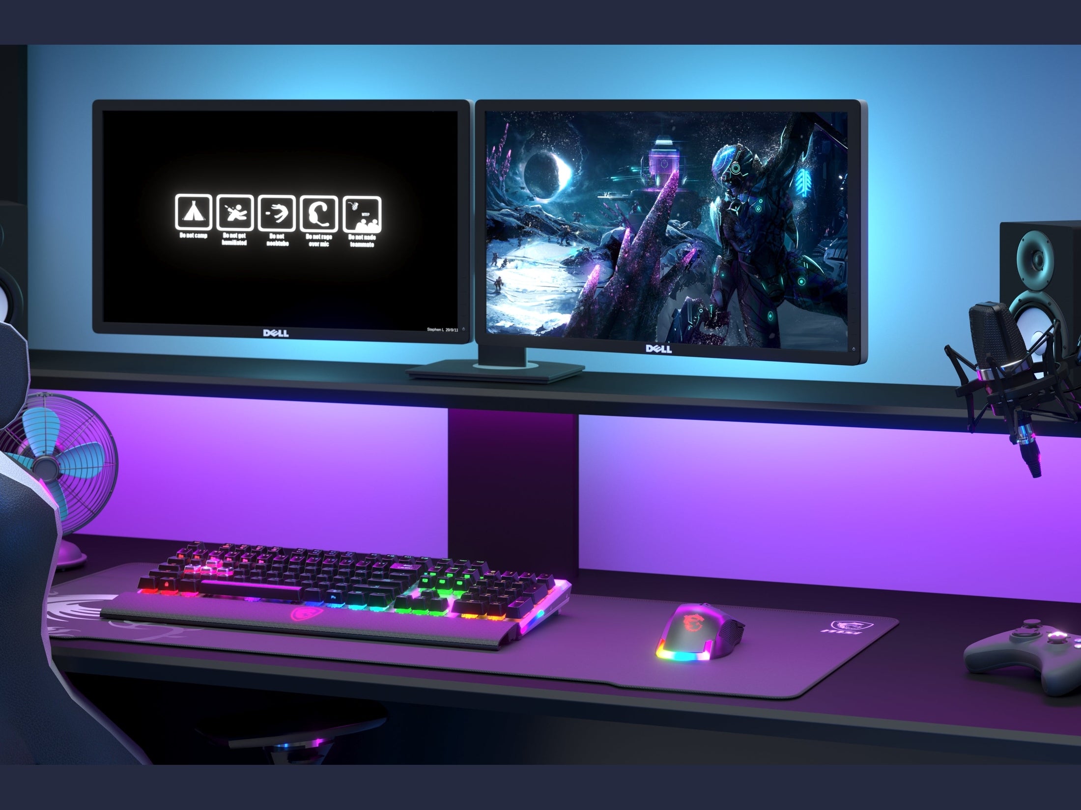 - RGB LED-Beleuchtung mit Farbwechsel unter der Monitorfläche