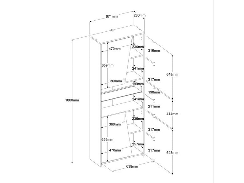 - Stellmaß 134 × 180 × 28 cm (beide Regale gesamt)