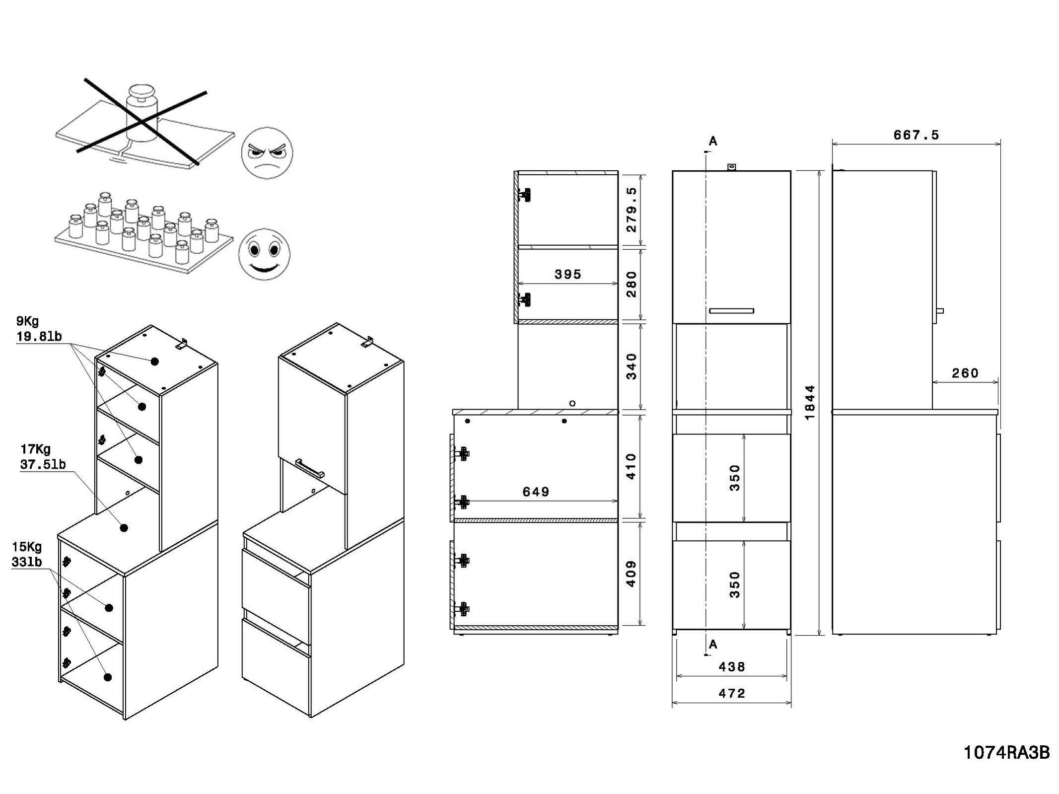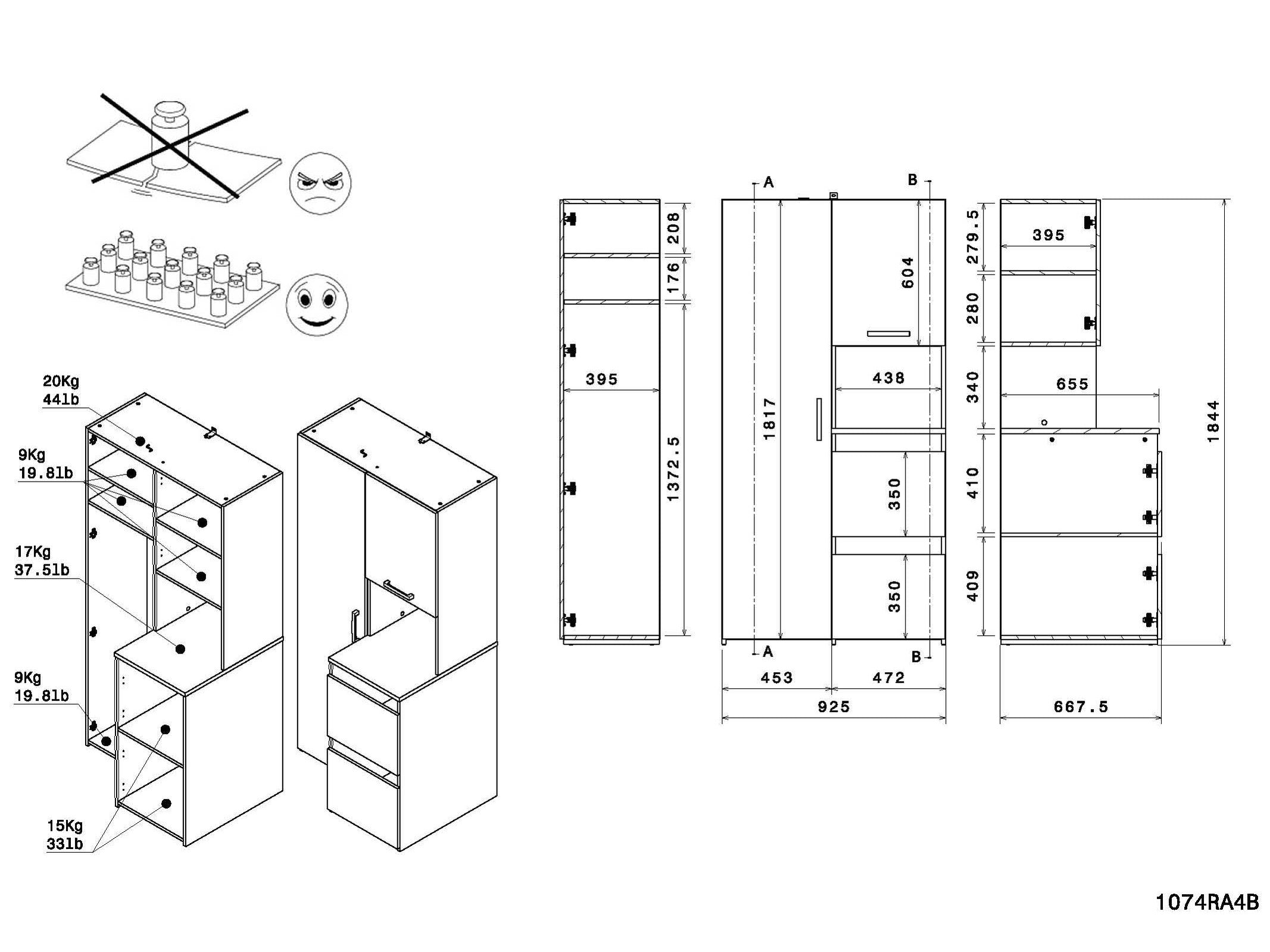 Dieses dreiteilige Set ist perfekt auf die Bedürfnisse moderner Haushalte abgestimmt – mit Platz für Waschmaschine, Trockner, Reinigungszubehör, Wäschepflege und mehr.