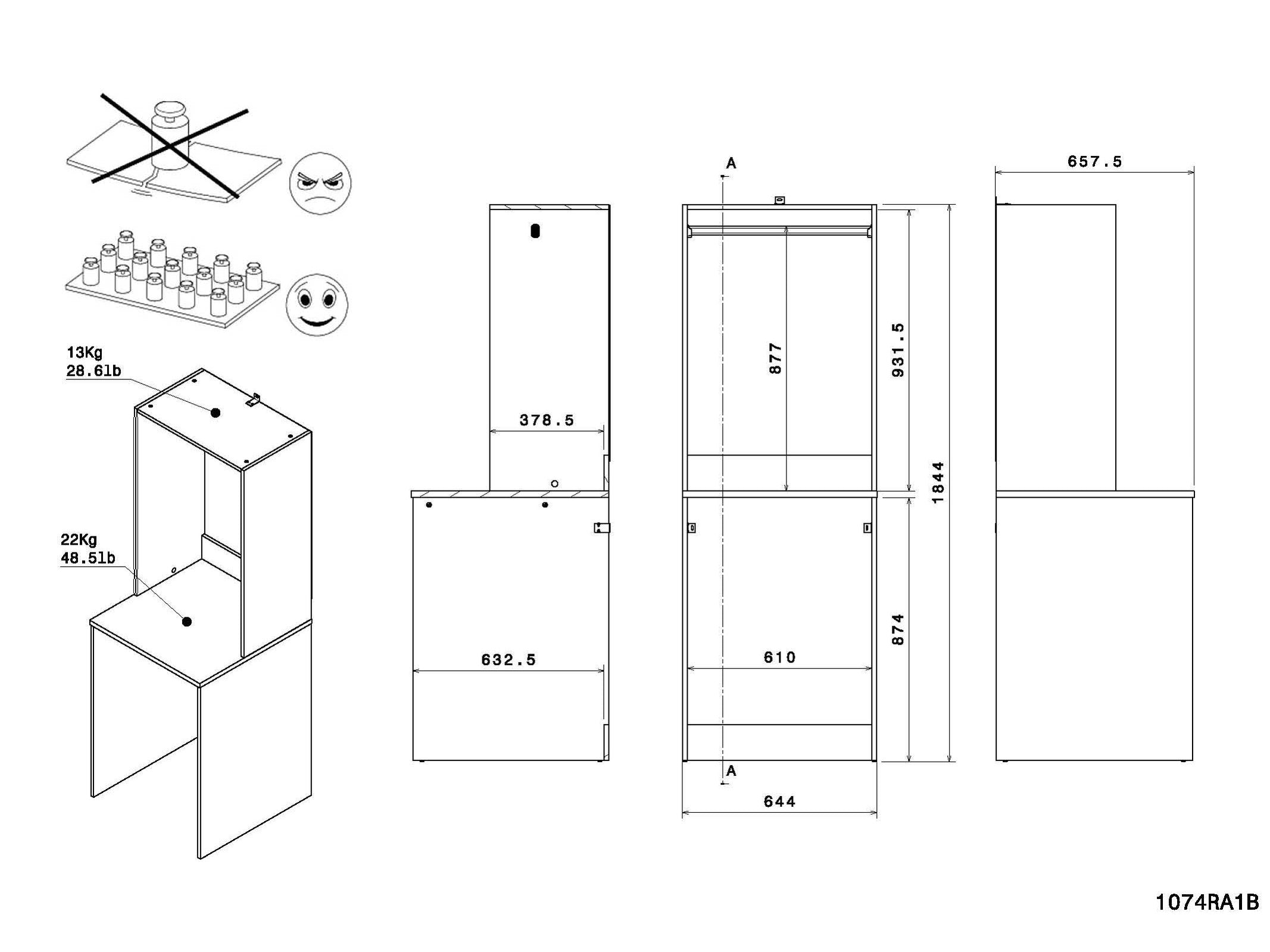 Unten: Fach für Waschmaschine oder Trockner